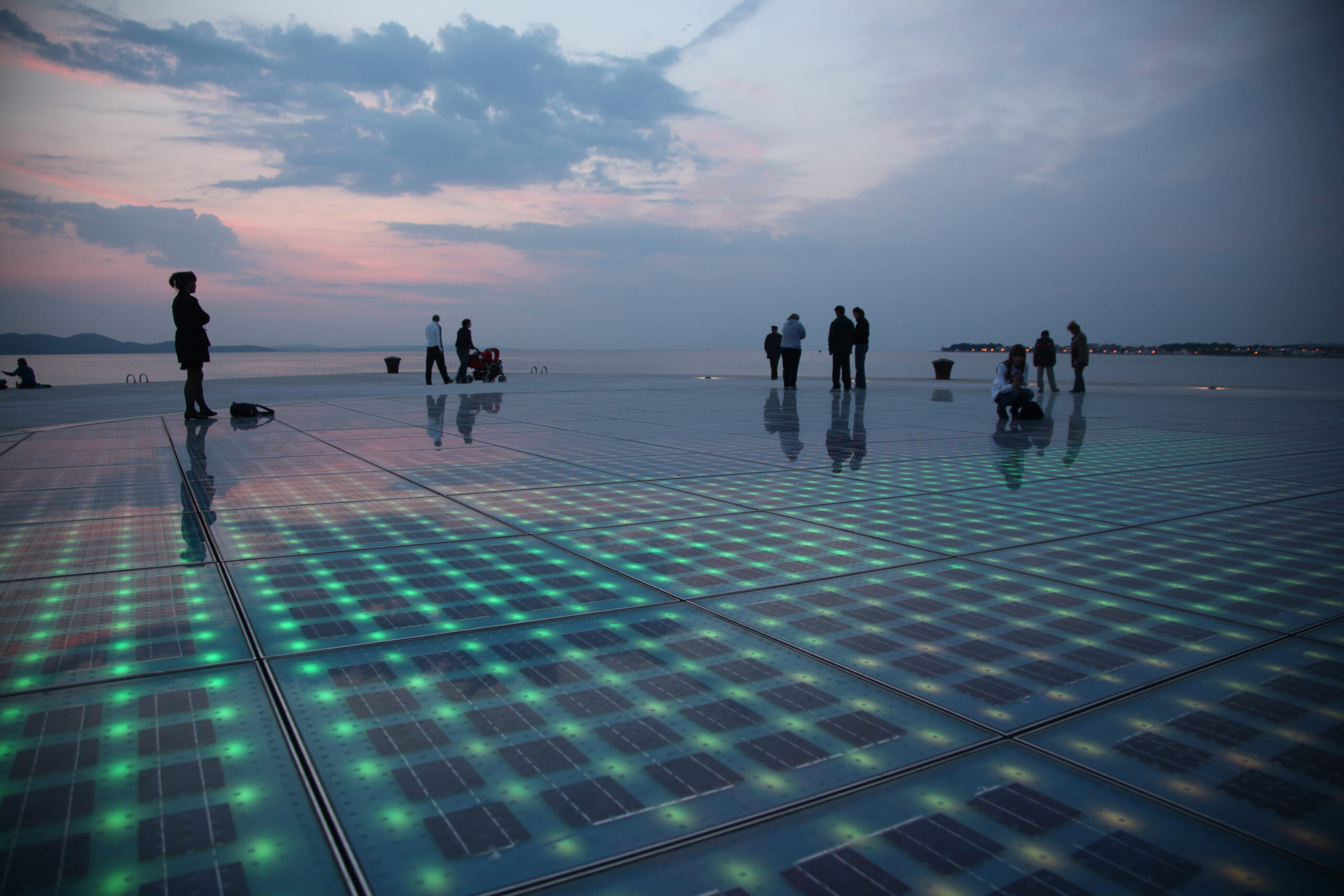 Die Realisierung farbiger Varianten wird durch die Verwendung von farbigen Zellen, Folien, Glas oder bedrucktem Glas erreicht. Wir fertigen semi-transparente Lösungen mit unterschiedlichen Zellabständen oder mit semi-transparenten Zellen, welche ein gleichmäßiges Schattenbild erzeugen. Übrigens: Mit einer Modulgröße von 2440 x 5000 mm halten wir den Weltrekord im Bereich der Solarmodule aus Glas.